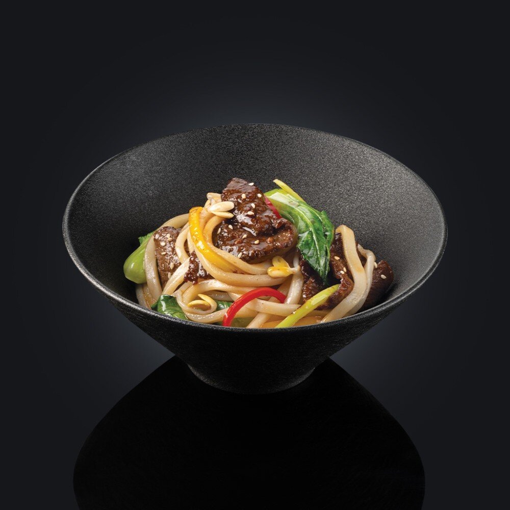 Широкая пшеничная лапша, пак-чой, паприка, ростки сои, чеснок, устричный чили соус
