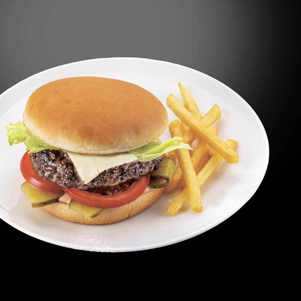 Мини бургер с котлетой из рубленной говядины, маринованным огурцом, сливочным сыром и салатом айсберг. Подается с картофелем фри. Соус на выбор; кетчуп, сметана, сырный, майонез.