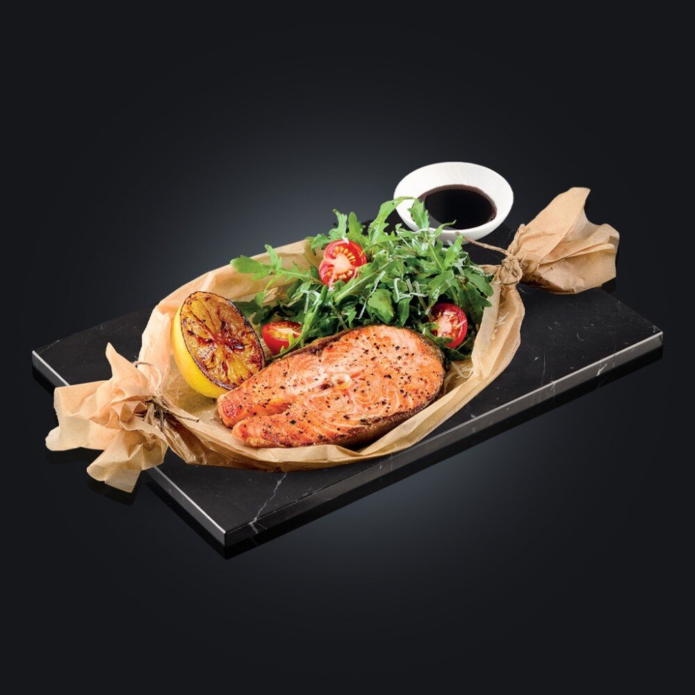 С рукколой, томатами черри, пармезаном, под соусом "Бальзамик". Сервируется, с соусом "Наршараб".